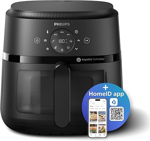 مقلاة هوائية XL من فيليبس، 1700 واط، 50 60 هرتز، 6.2 لتر، 1.2 كجم، نافذة شفافة، وظائف طهي 13 في 1، تقنية الهواء السريع، اسود – NA230 00