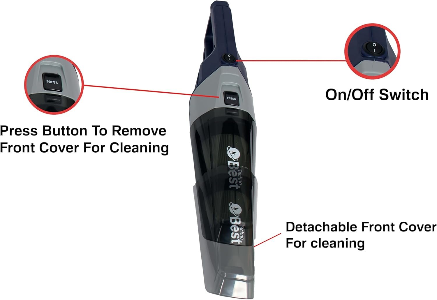 مكنسة كهربائية بعصا محمولة باليد 2 في 1 من تيكنو بيست – 600 واط بفلتر هيبا/ خفيفة الوزن وهادئة للغاية، موديل