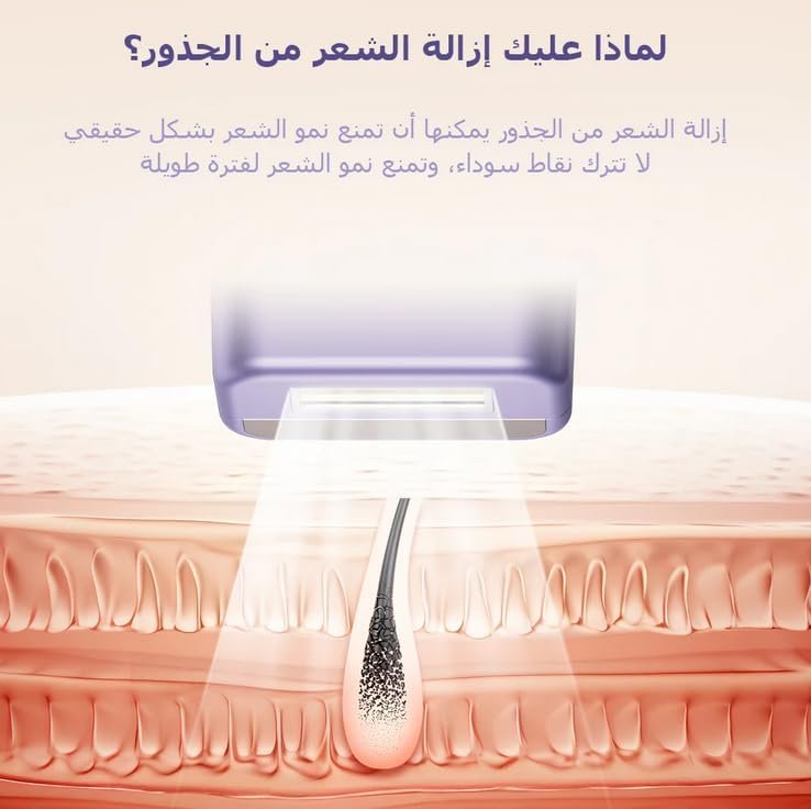 • عدسة HR تستهدف بصيلات الشعر للمساعدة على تقليل نموه تدريجيًا.